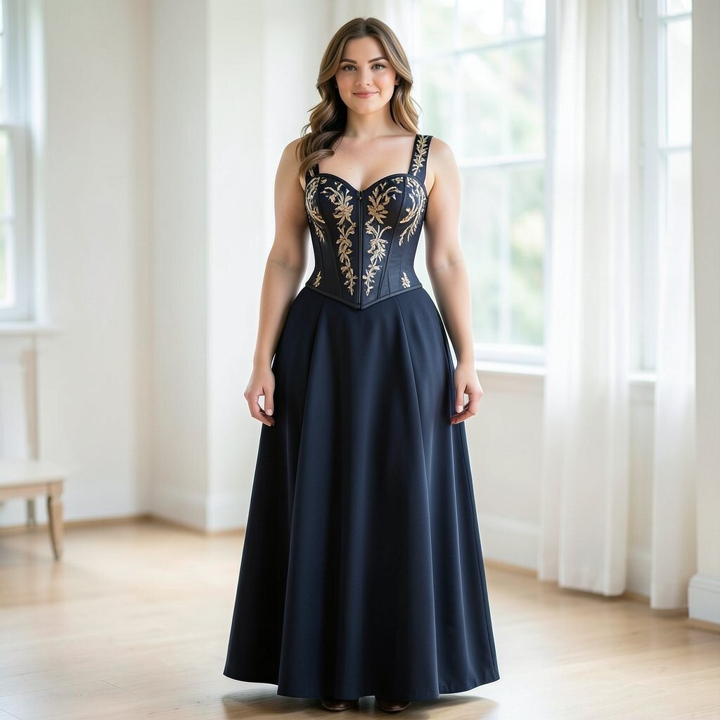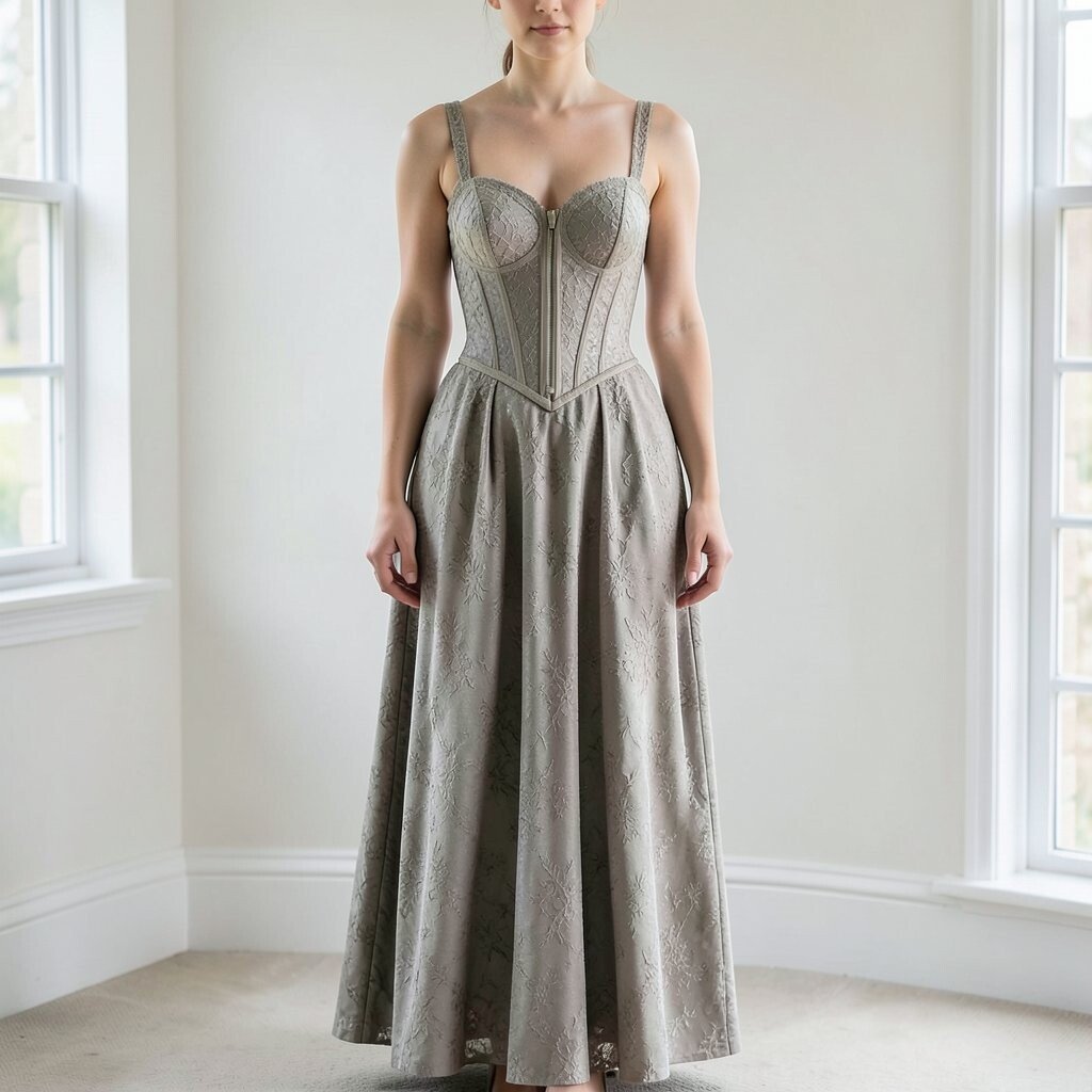 Embroidery adds an artisanal touch to the corset maxi dress. This style showcases craftsmanship and attention to detail.