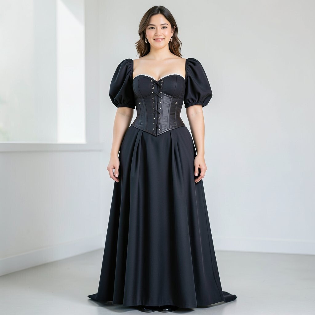 The voluminous sleeves balance the fitted corset, creating a striking silhouette. It’s perfect for occasions where you want to stand out.