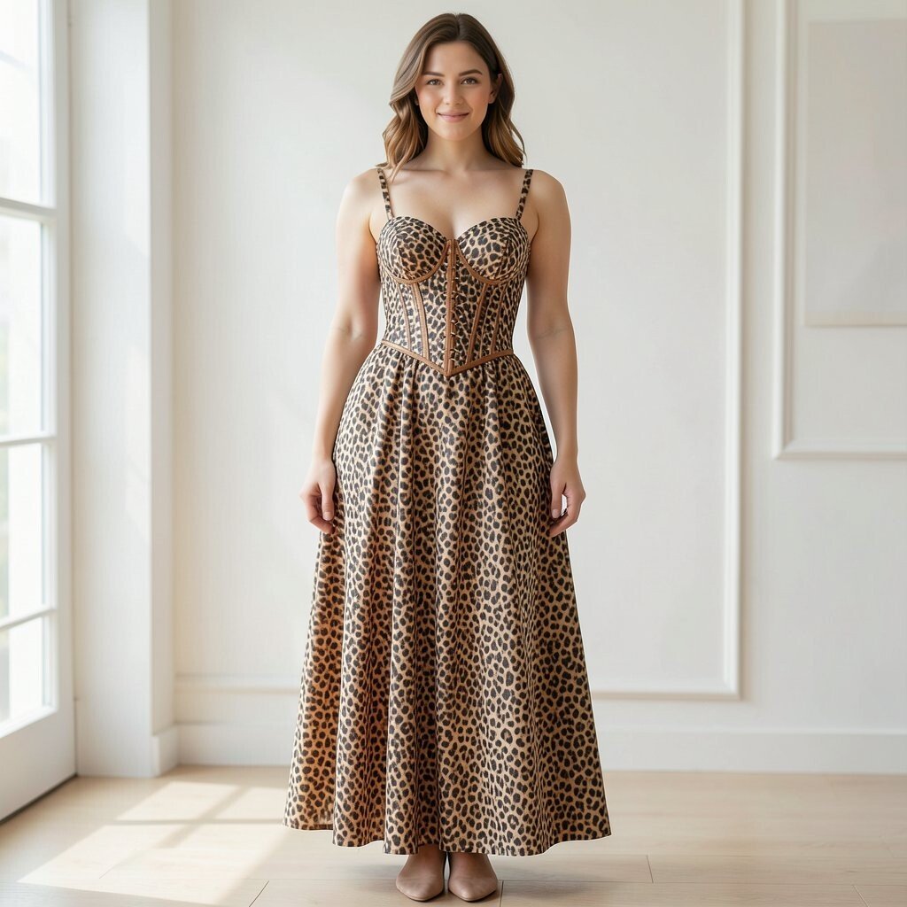 Animal prints add a bold and edgy twist to the corset maxi dress. It’s a great choice for those who love to make a statement.
