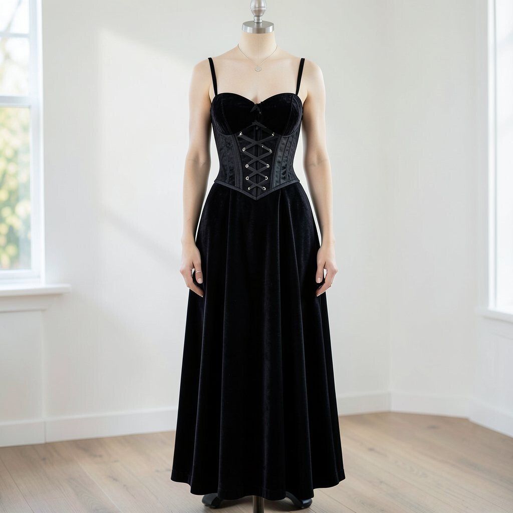 Velvet brings a warm and luscious texture to any outfit. The velvet corset maxi dress is no exception.