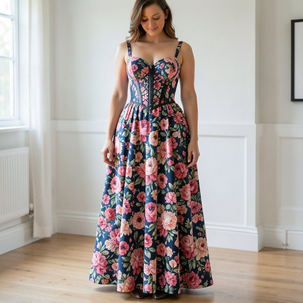Envision a garden in full bloom right on your dress. A floral corset maxi dress is perfect for capturing that essence.
