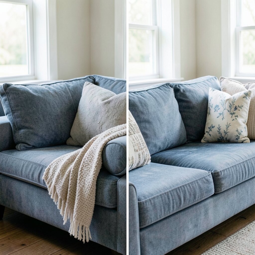 Old jeans can find new life as a couch cover! Denim is durable, stylish, and gives a relaxed, casual vibe.