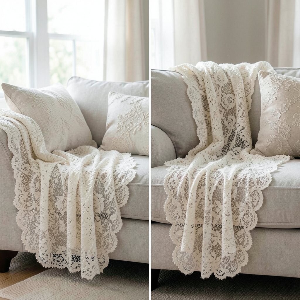 Lace isn’t just for clothing! An elegant lace overlay can add a delicate, feminine touch to your couch.