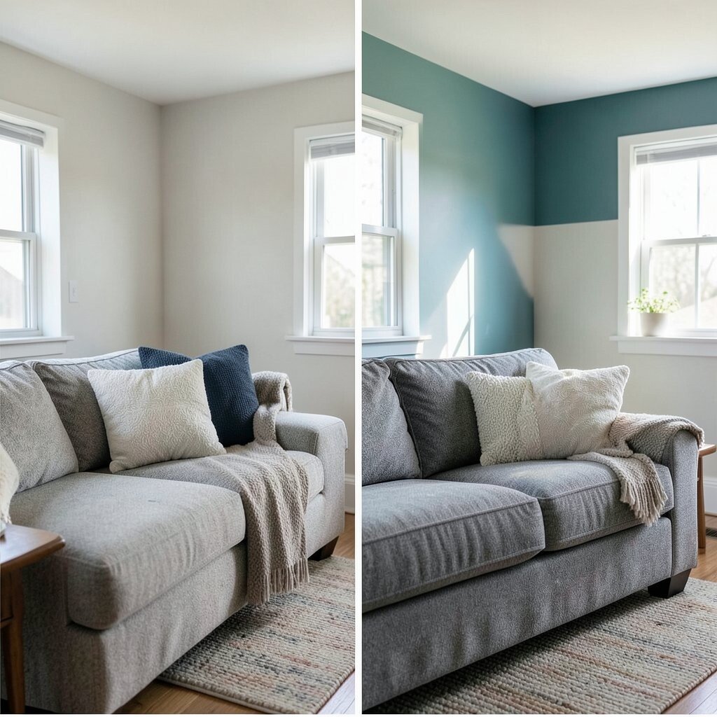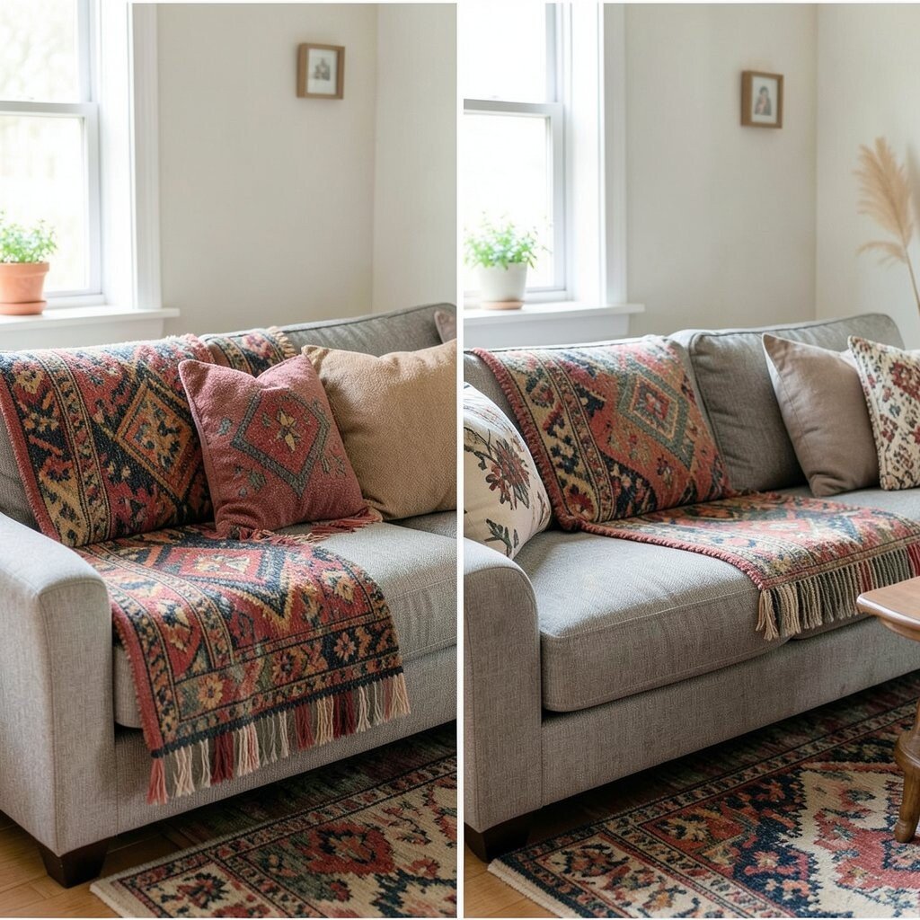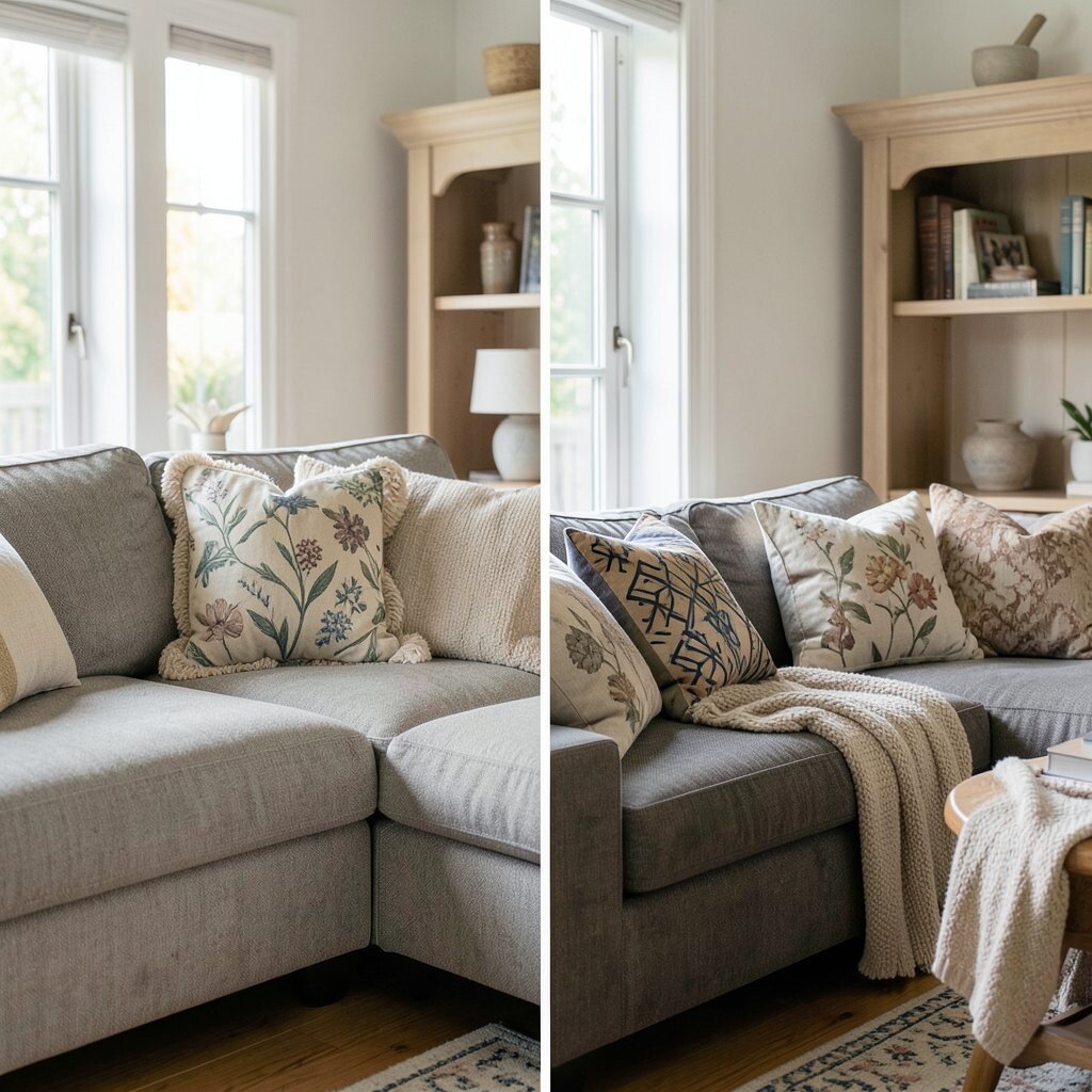This idea works well with plain or light-colored couches. It’s a great way to add a personal touch without a big investment.