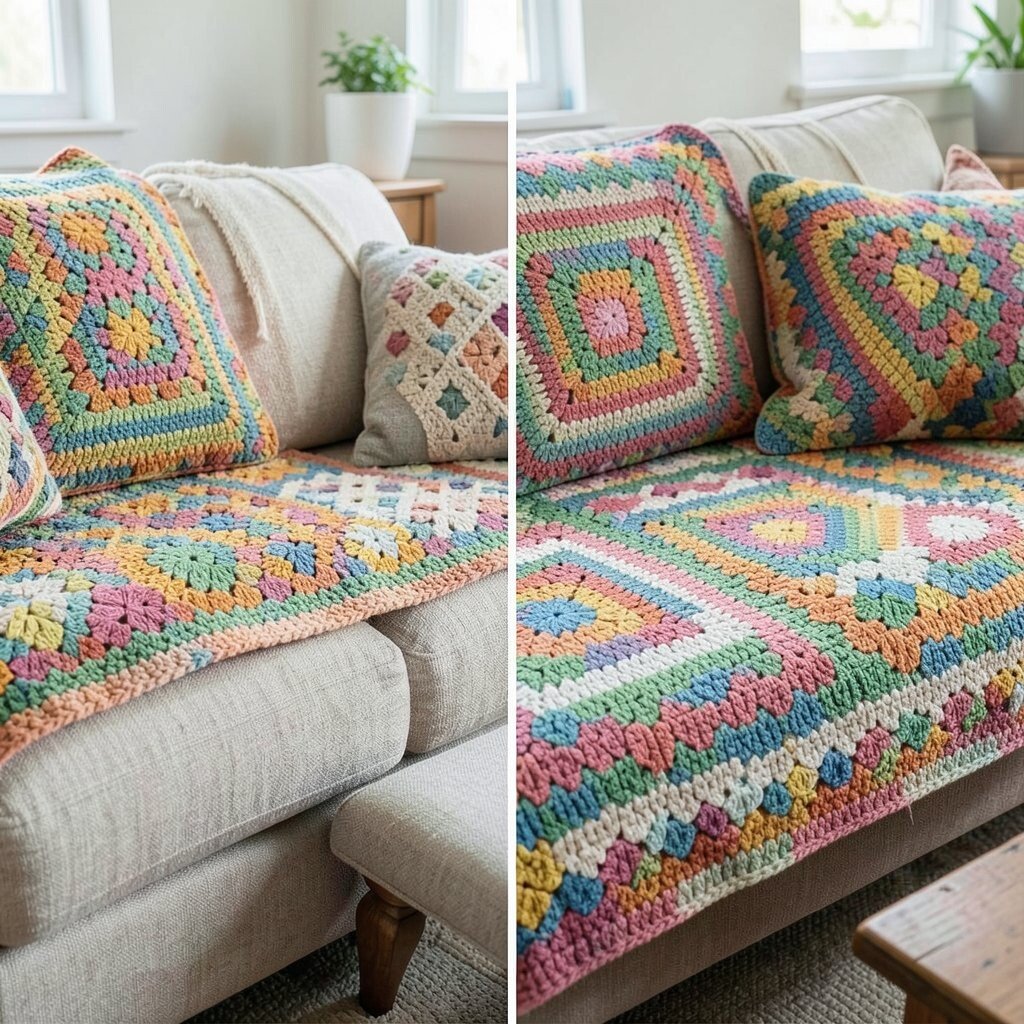 Crochet covers bring a retro, handmade feel to your couch. They’re perfect for a boho or vintage theme.