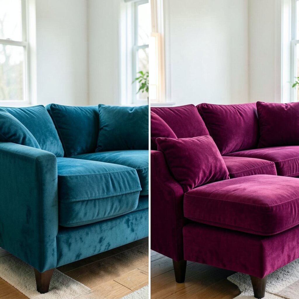 Imagine your couch wrapped in lush, vibrant velvet. This rich fabric can turn any old piece into a luxurious statement. Velvet is soft, classy, and adds a touch of elegance to any room.