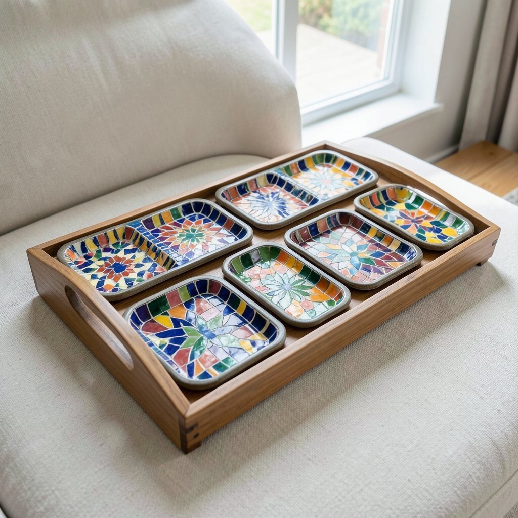 Mosaic trays are a feast for the eyes with their intricate patterns. They are perfect for adding a splash of color to your couch.