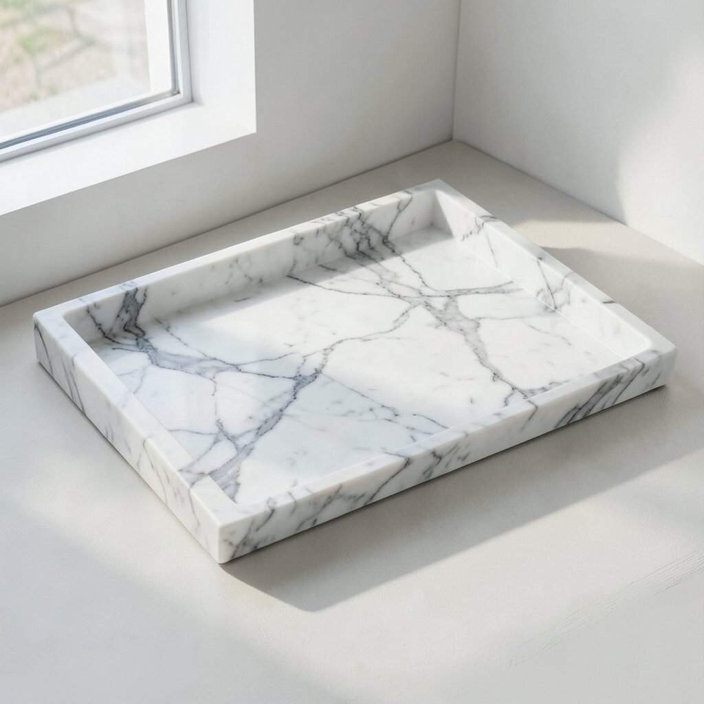 Marble trays offer a luxurious feel with their smooth, cool surface. Their elegant design elevates any living room decor.