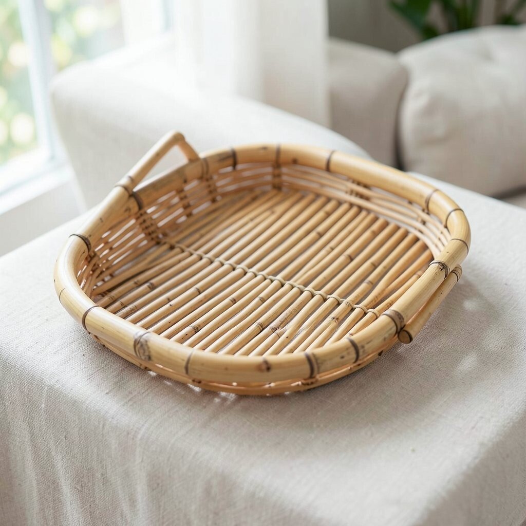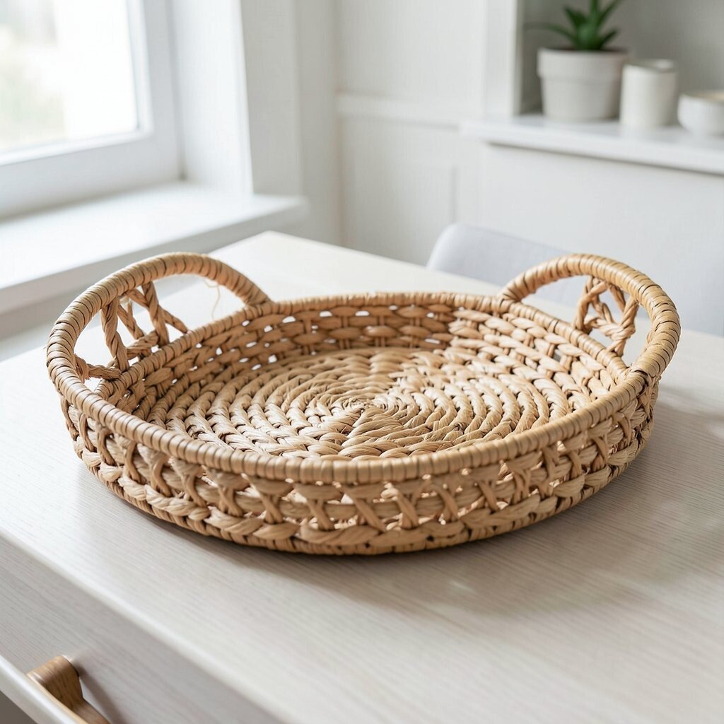 Woven trays add texture and warmth to your living space. They come in natural materials like rattan or wicker.