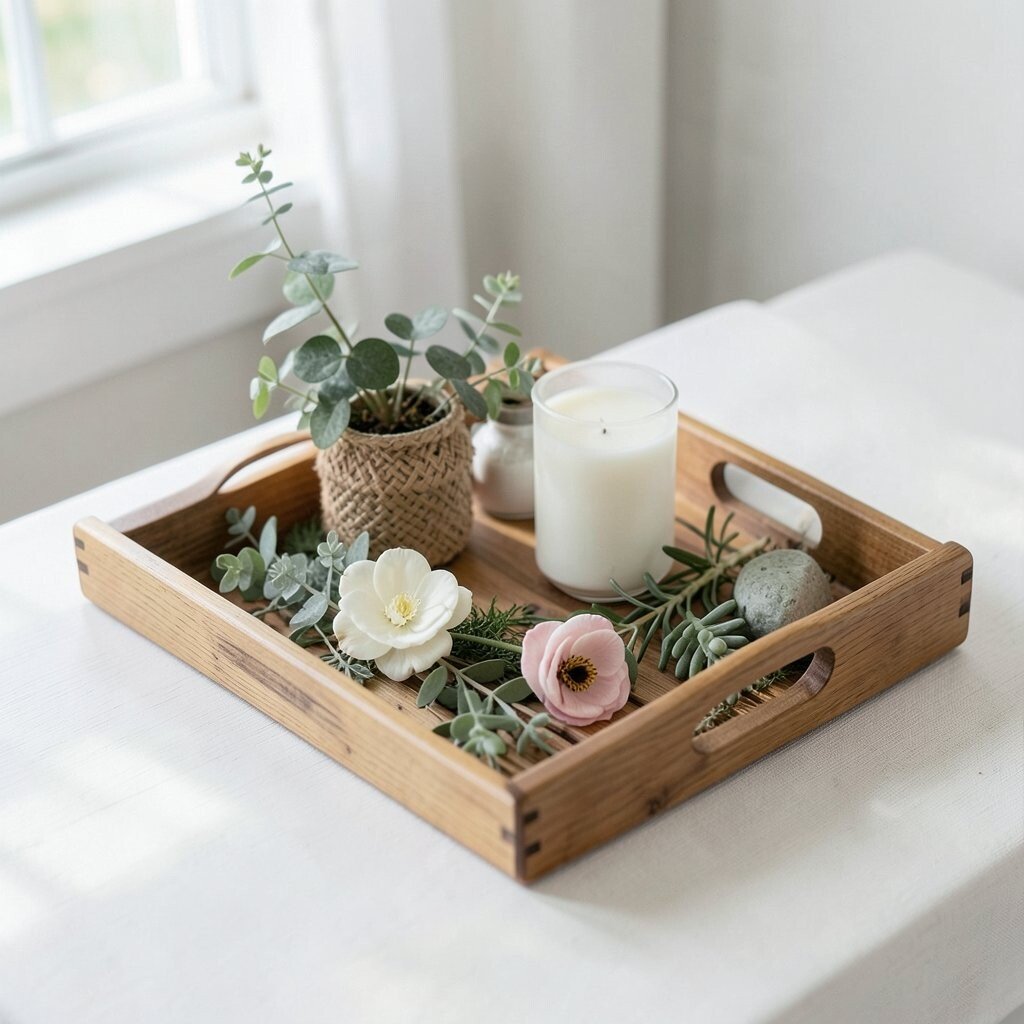 Personalize your tray with a small plant or a handmade coaster set. Bamboo trays are often reasonably priced, making them accessible to many. They’re a popular choice for eco-friendly households.