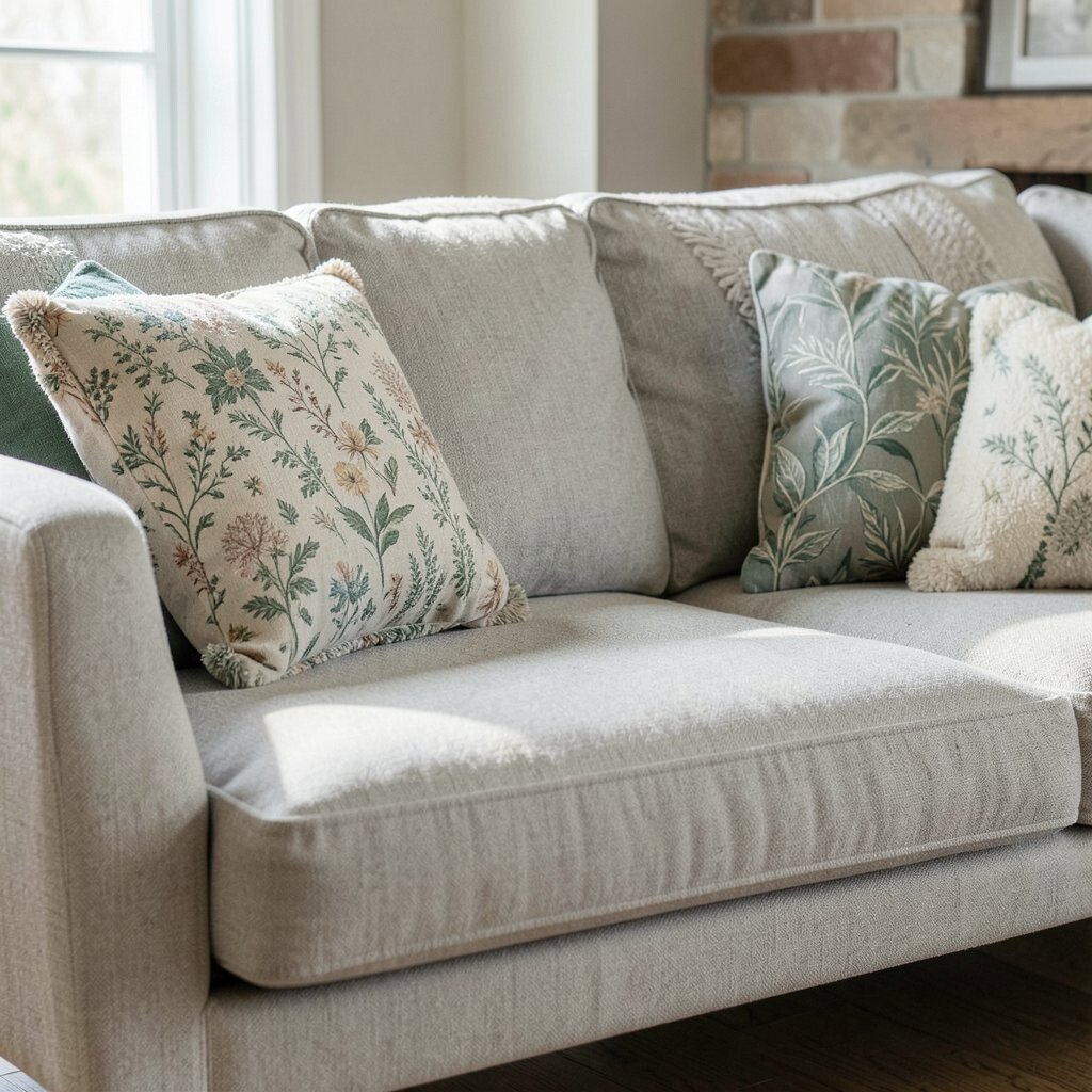 This approach adds depth and interest to your couch. It’s perfect for a cozy, inviting atmosphere.