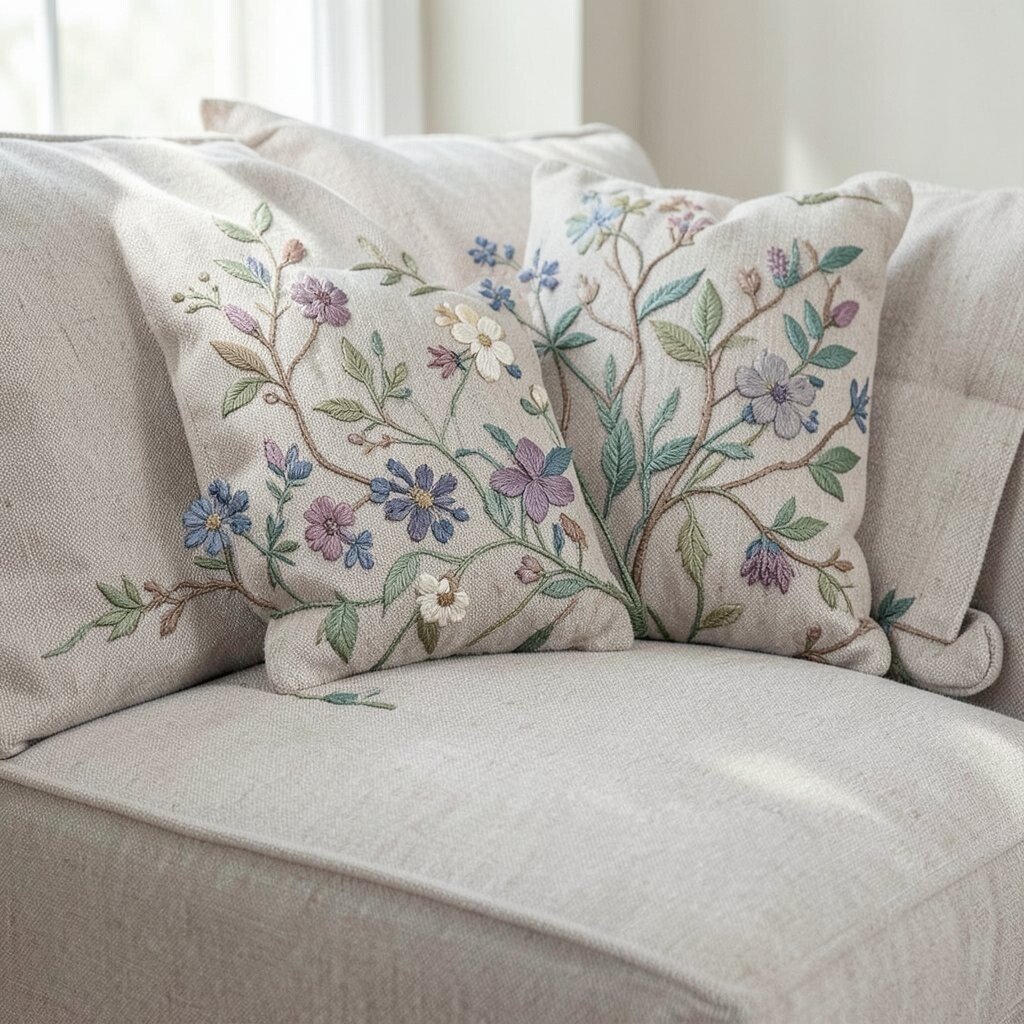 Embroidery adds an artistic, handcrafted touch to your couch.