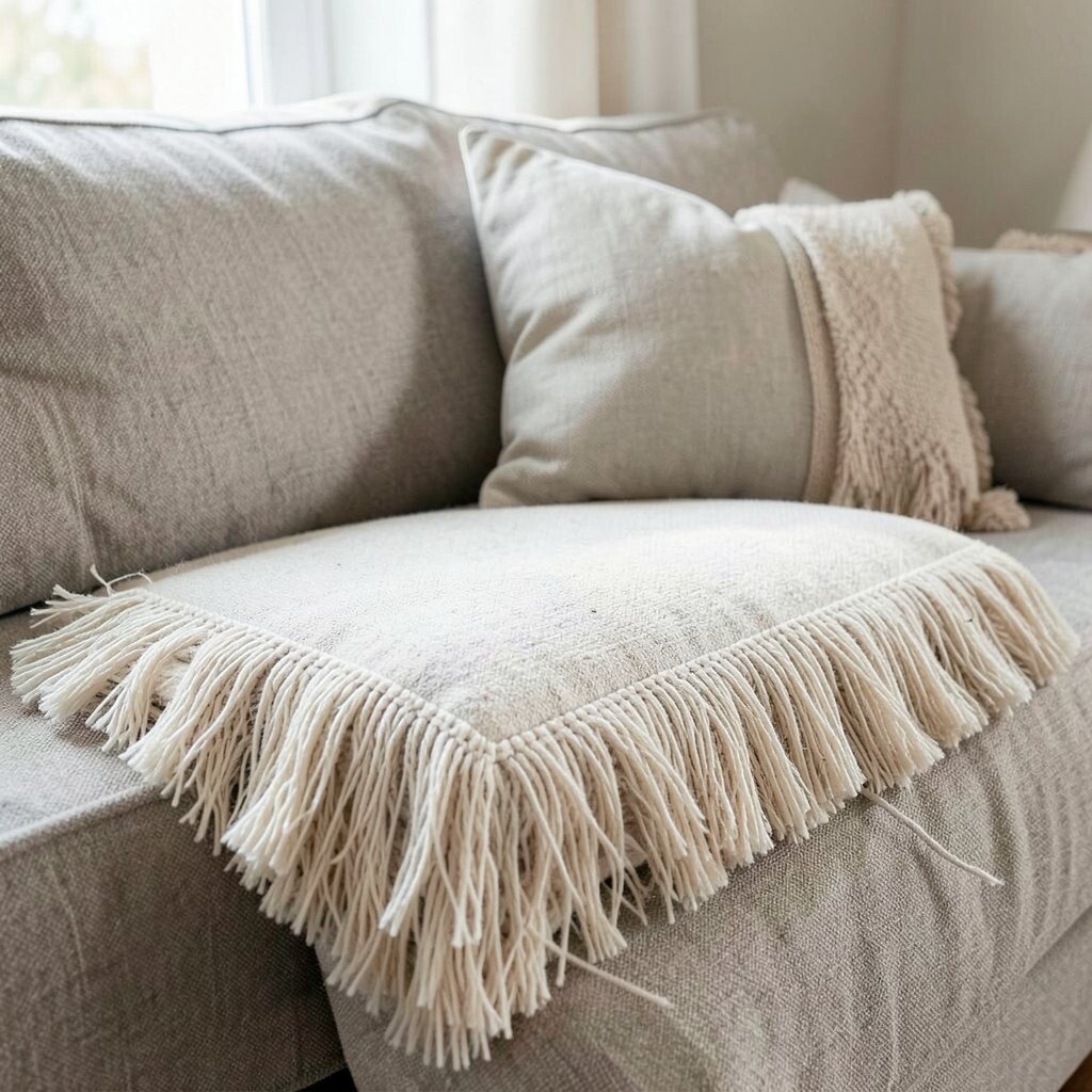 Fringe can be added to cushions, edges, or even the entire couch. It’s perfect for a playful, bohemian look.
