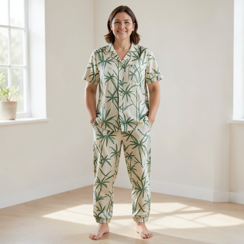 The Classic Bamboo Pajama Set offers a timeless look with its sleek design and neutral colors. This set is perfect for those who appreciate simplicity combined with comfort.
