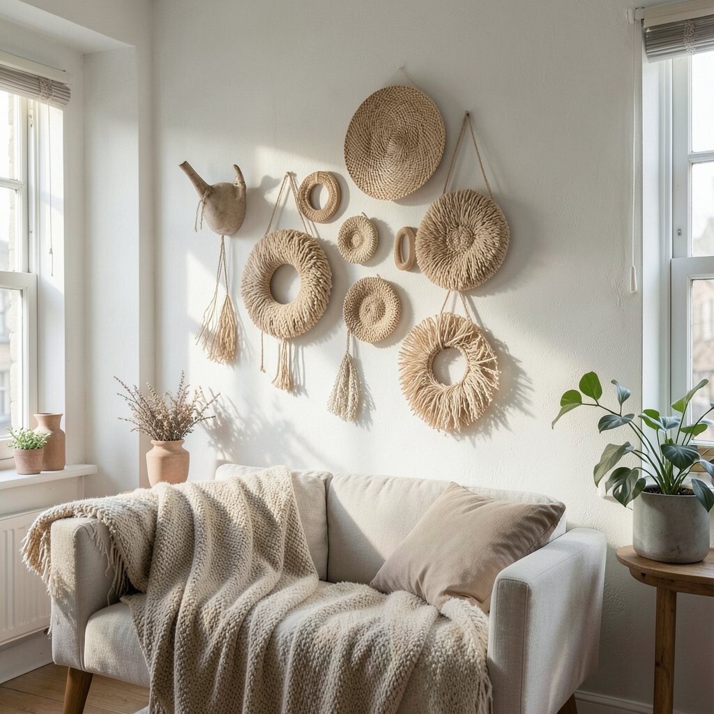 Hang macramé or woven art pieces to add texture to your walls. They bring a bohemian vibe that’s trendy and cozy.