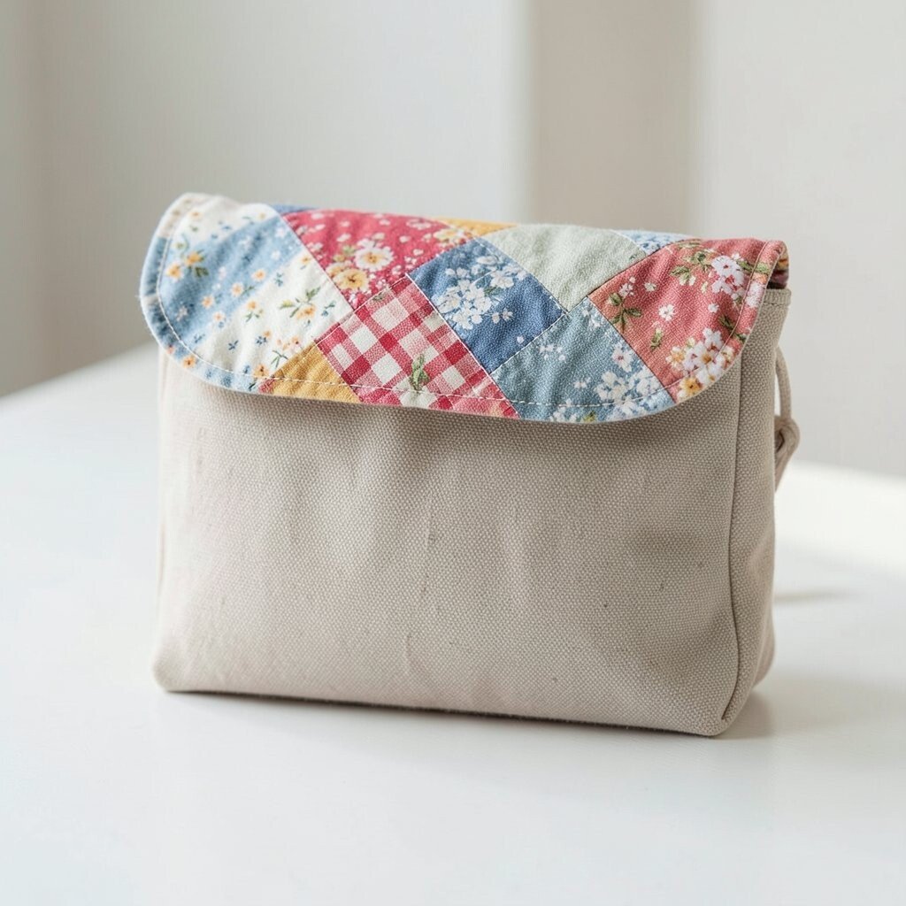 A patchwork flap brings color, texture, and personality together. It can feel cozy, cheerful, or bold depending on the pieces you choose.
