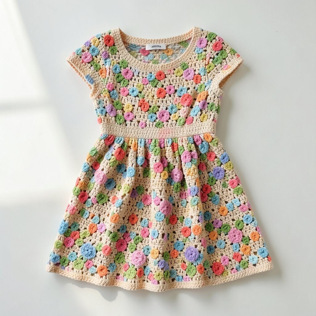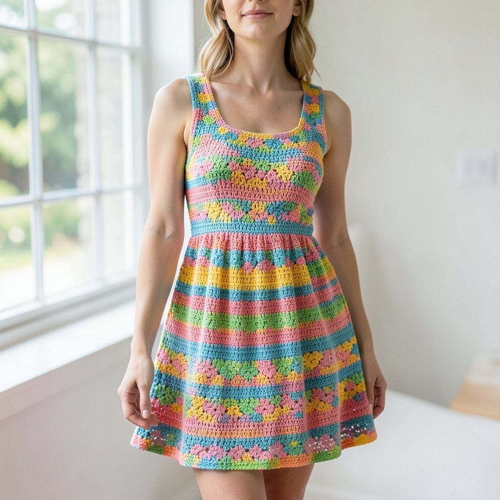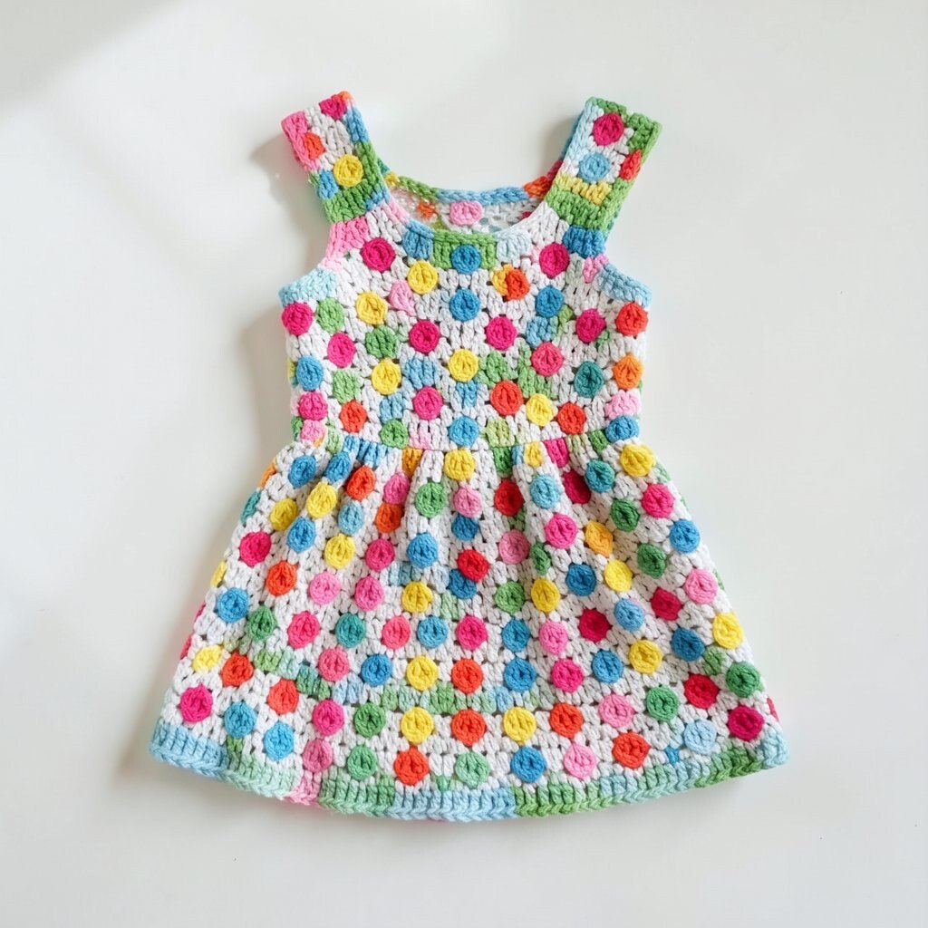 You’ll love how each granny square adds its own personality to the finished piece. This dress is a tribute to the joy of crochet.