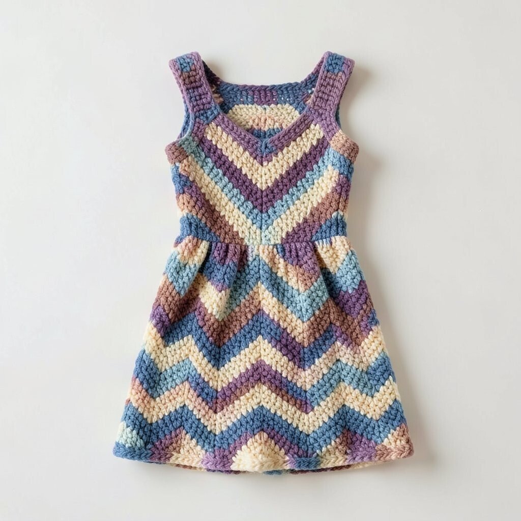 Chevron stripes are a timeless pattern that adds a touch of sophistication to any dress. A crochet mini dress with classic chevron stripes is both elegant and fun.