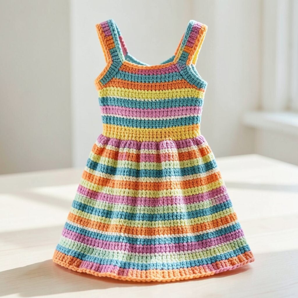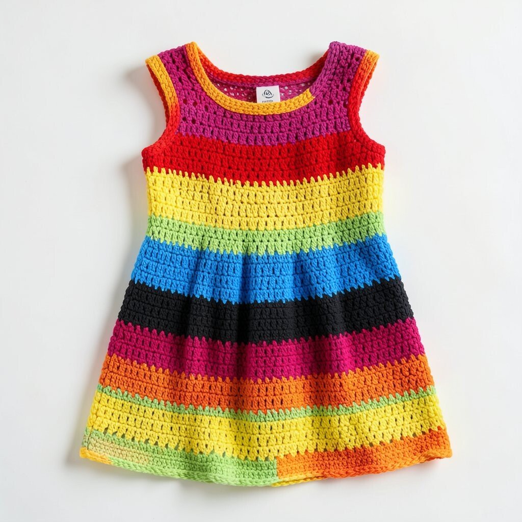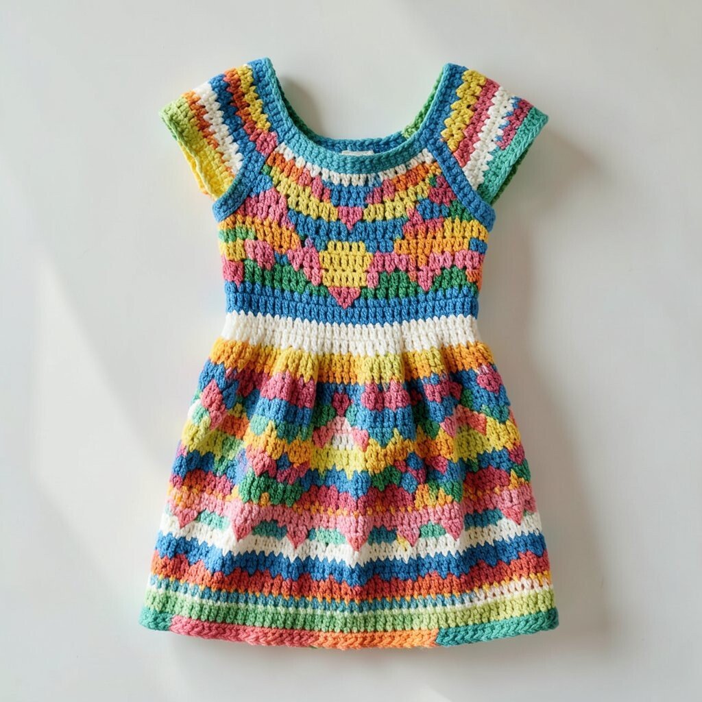 This design is perfect for showcasing your crochet skills in a fun way. Each square can be a different color, making every dress unique.