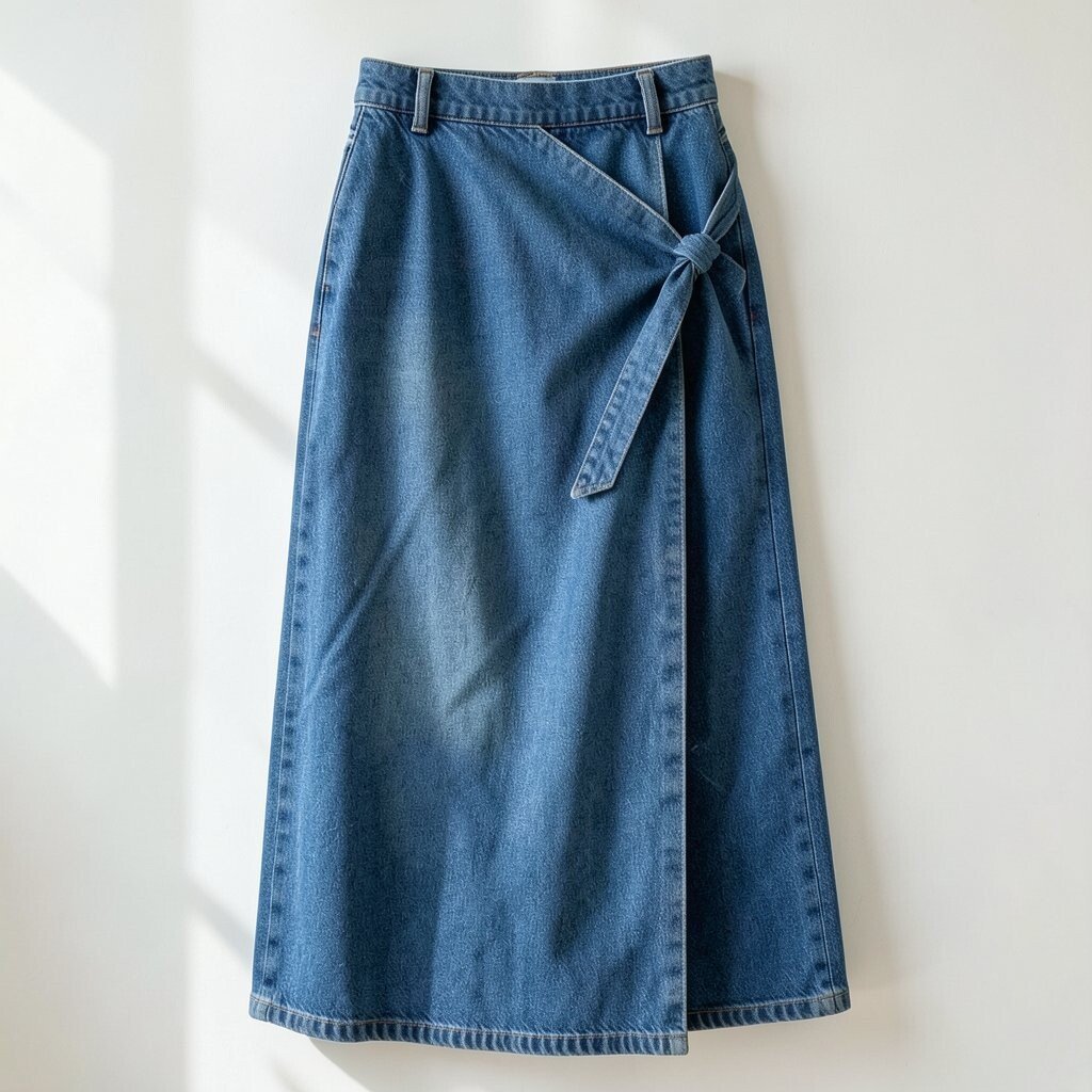 Wrap denim maxi skirts are all about comfort and ease. The adjustable waist makes it a versatile choice.
