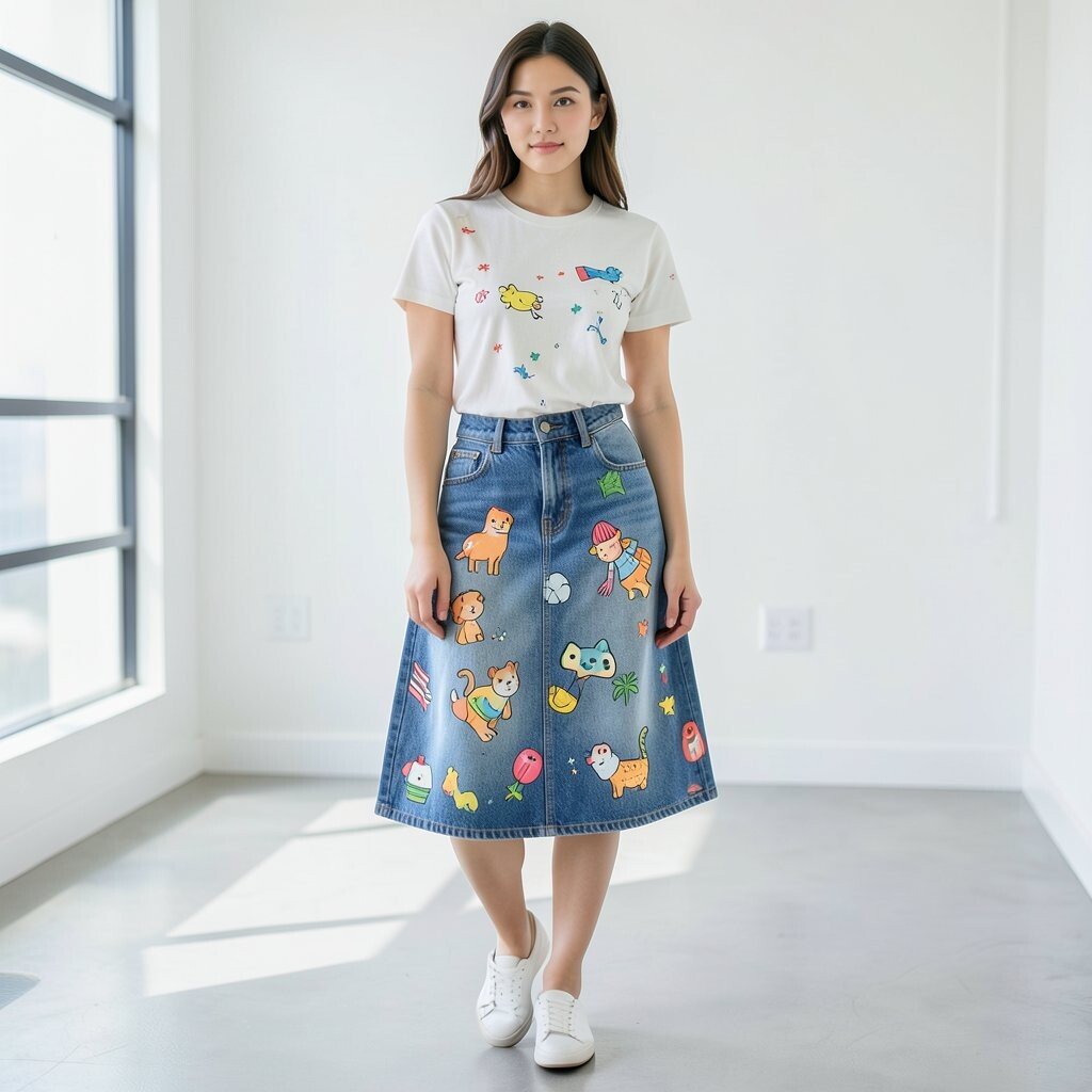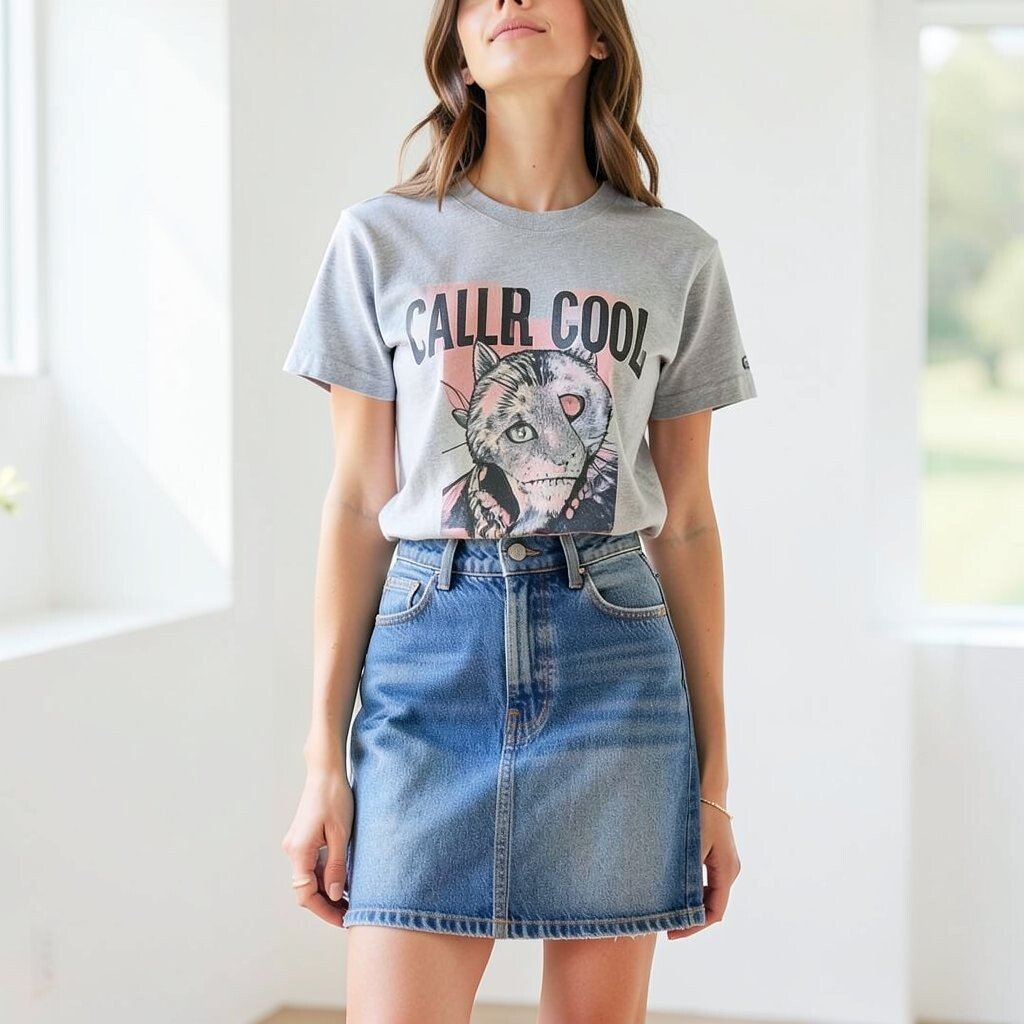 Pairing a graphic tee with a denim skirt is the ultimate casual cool look. Whether it’s your favorite band or a quirky print, a graphic tee adds personality to your outfit. This is an easy, go-to look for any laid-back occasion.