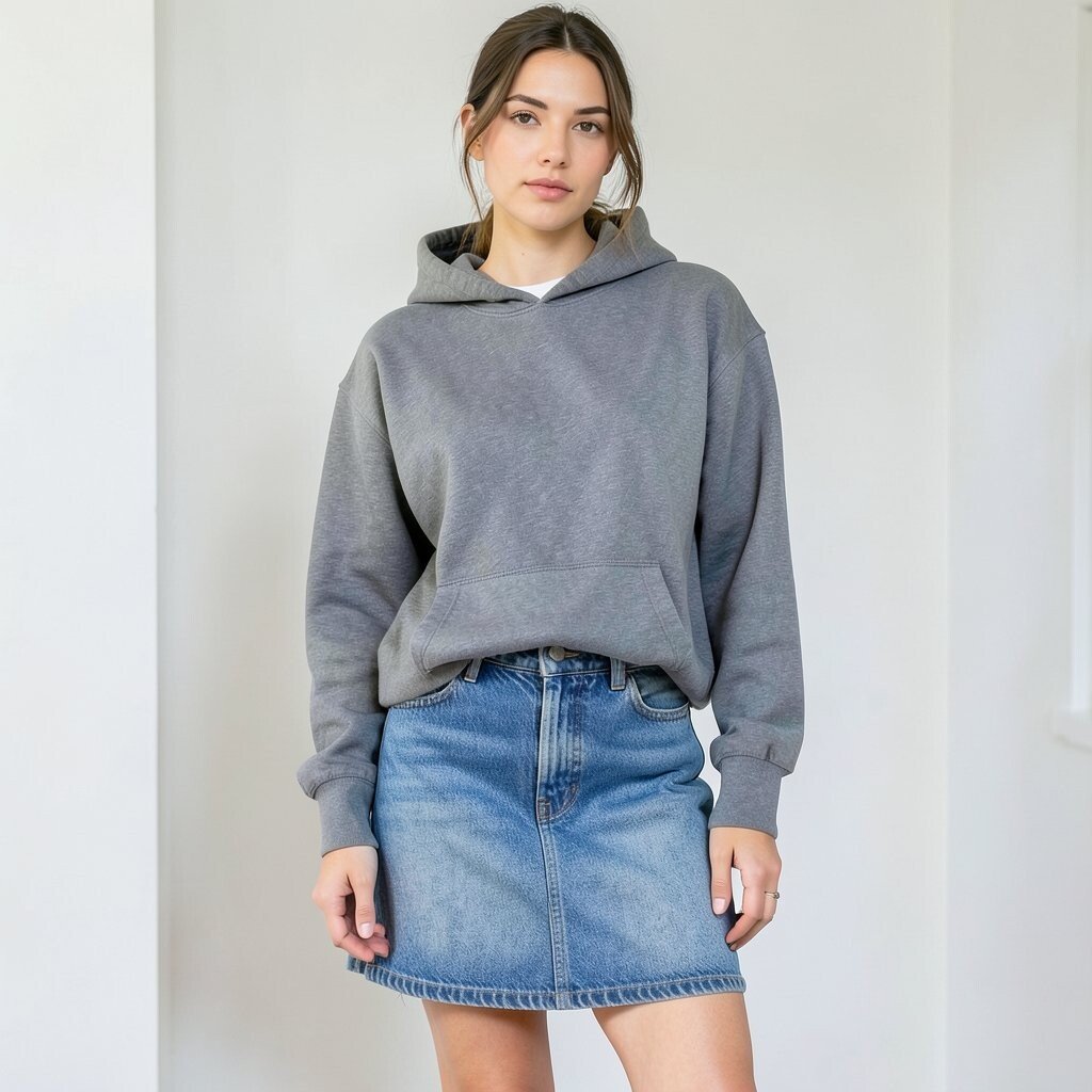 Combine comfort and style by pairing a hoodie with a denim skirt. This look is perfect for casual outings or just lounging around. The hoodie adds a relaxed vibe to the structured denim skirt.