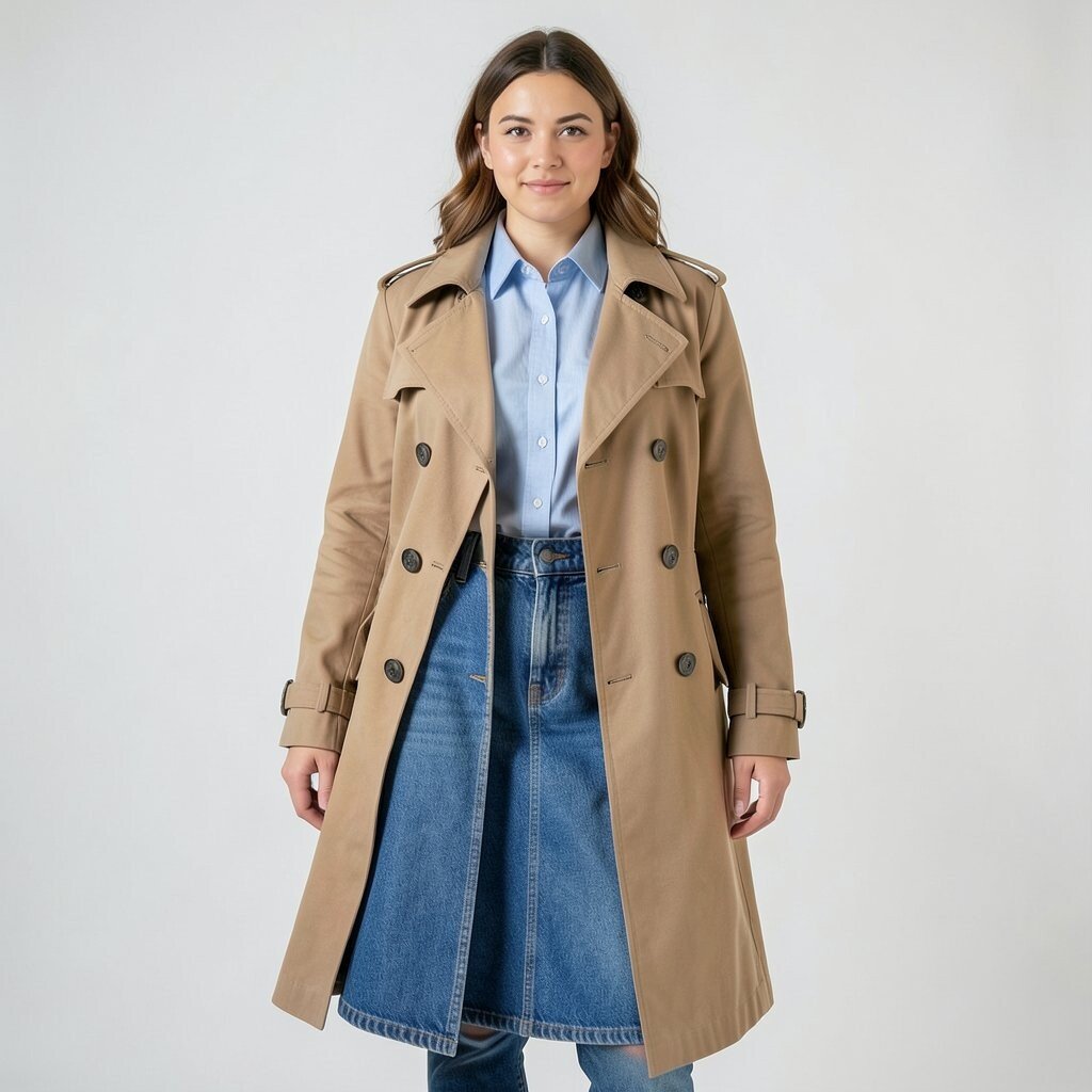 Opt for a trench in a classic color like beige or black. This outfit is both elegant and practical.
