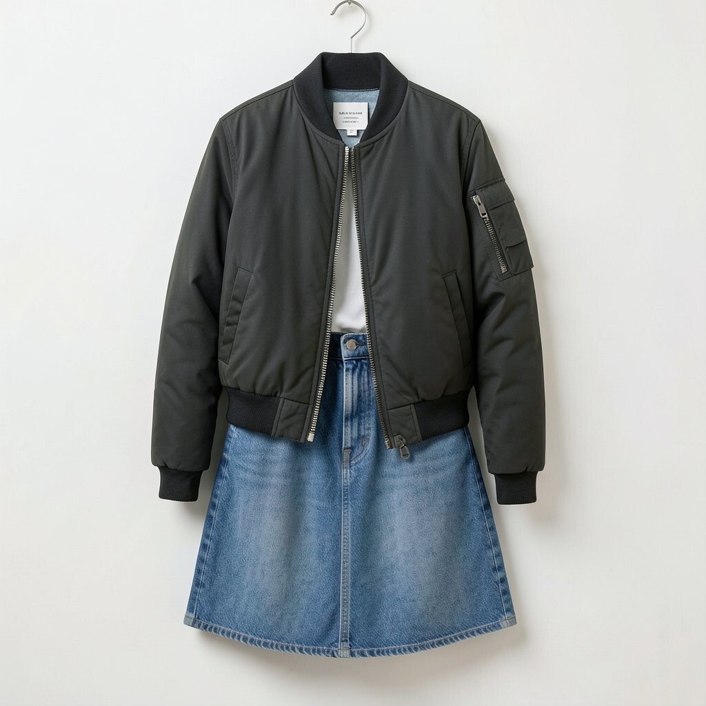 A bomber jacket can add a casual, sporty touch to your denim skirt outfit. It’s a great way to stay warm while looking stylish.