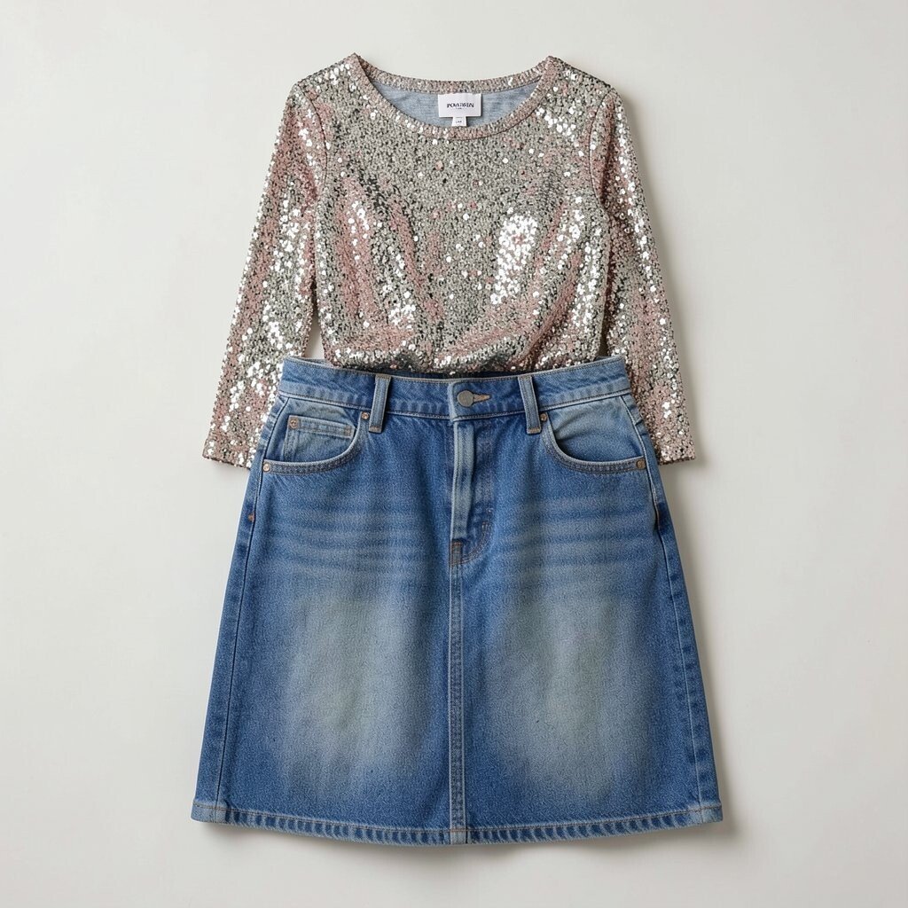 A sequin top can add a touch of glamour to your denim skirt outfit. It’s perfect for a night out or a special occasion.