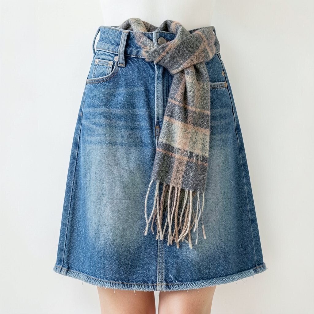 A fringe scarf can add a playful touch to your denim skirt outfit. It’s a fun way to add texture and movement.