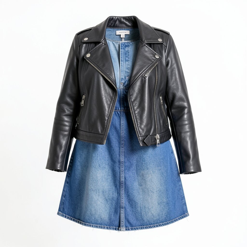 A leather jacket can add a bit of edge to your denim skirt ensemble. It’s a timeless pairing that never fails to impress.