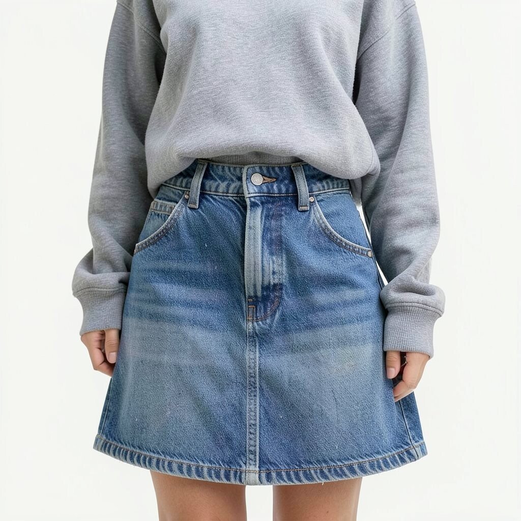 Layering a sweatshirt over a denim skirt creates a relaxed, comfortable look. It’s perfect for casual outings.