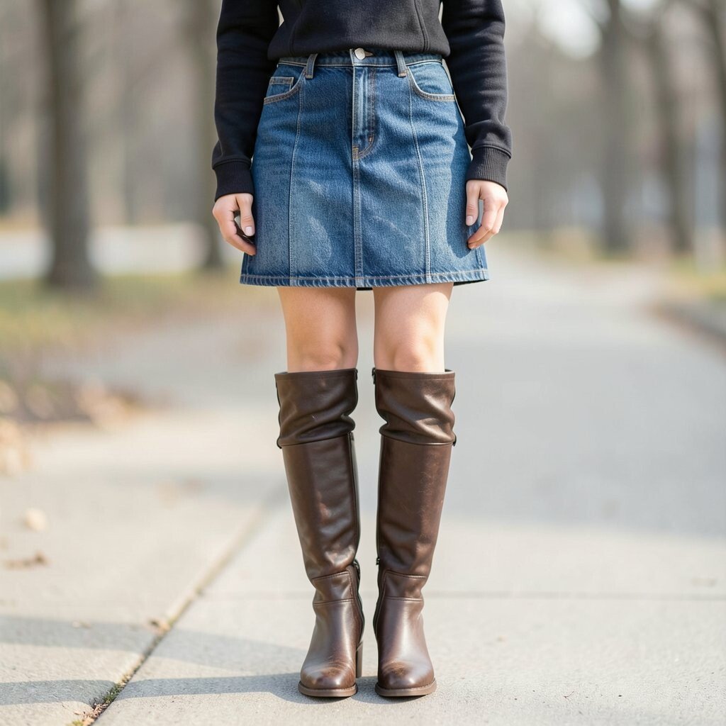 Over-the-knee boots are not only stylish but also provide extra warmth. They look fabulous with a denim skirt.