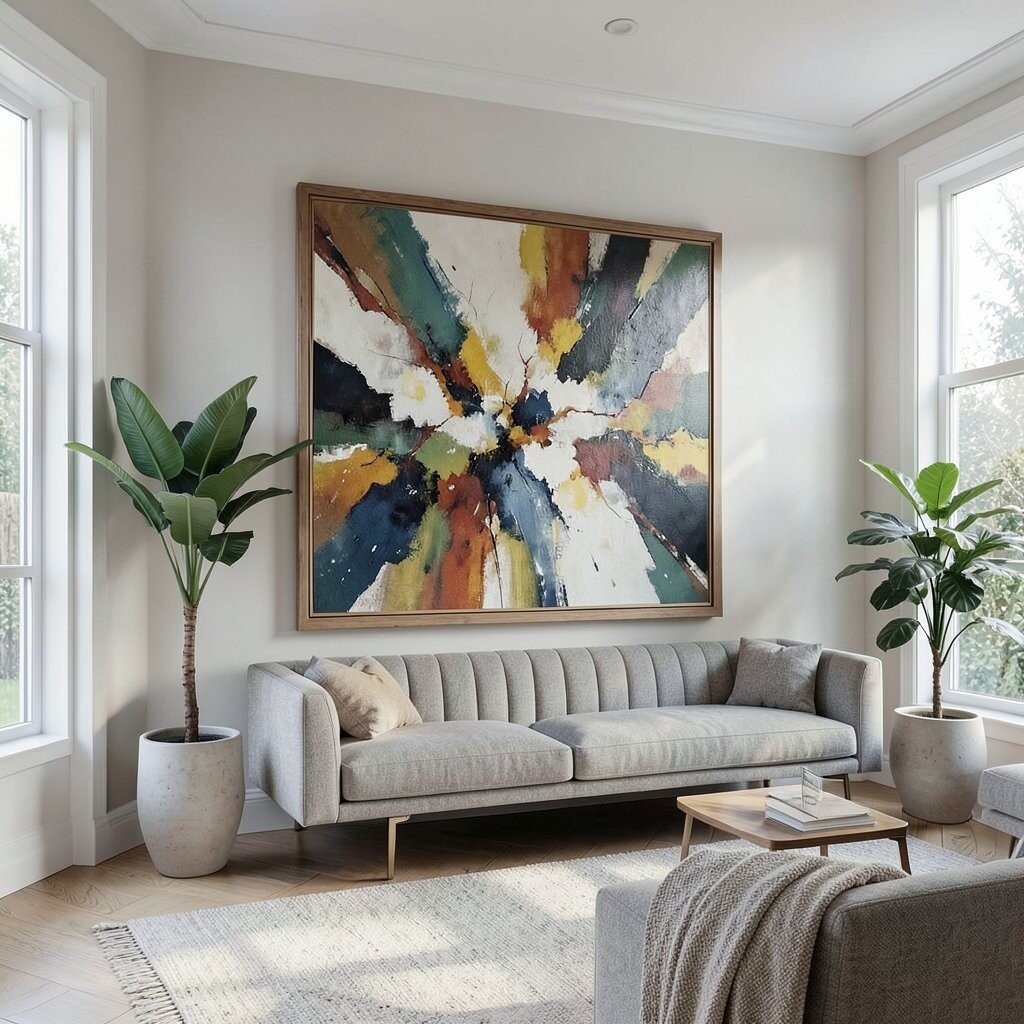 Big art can make a room feel finished in a simple way. One large piece often looks cleaner than many tiny pieces spread around the wall.