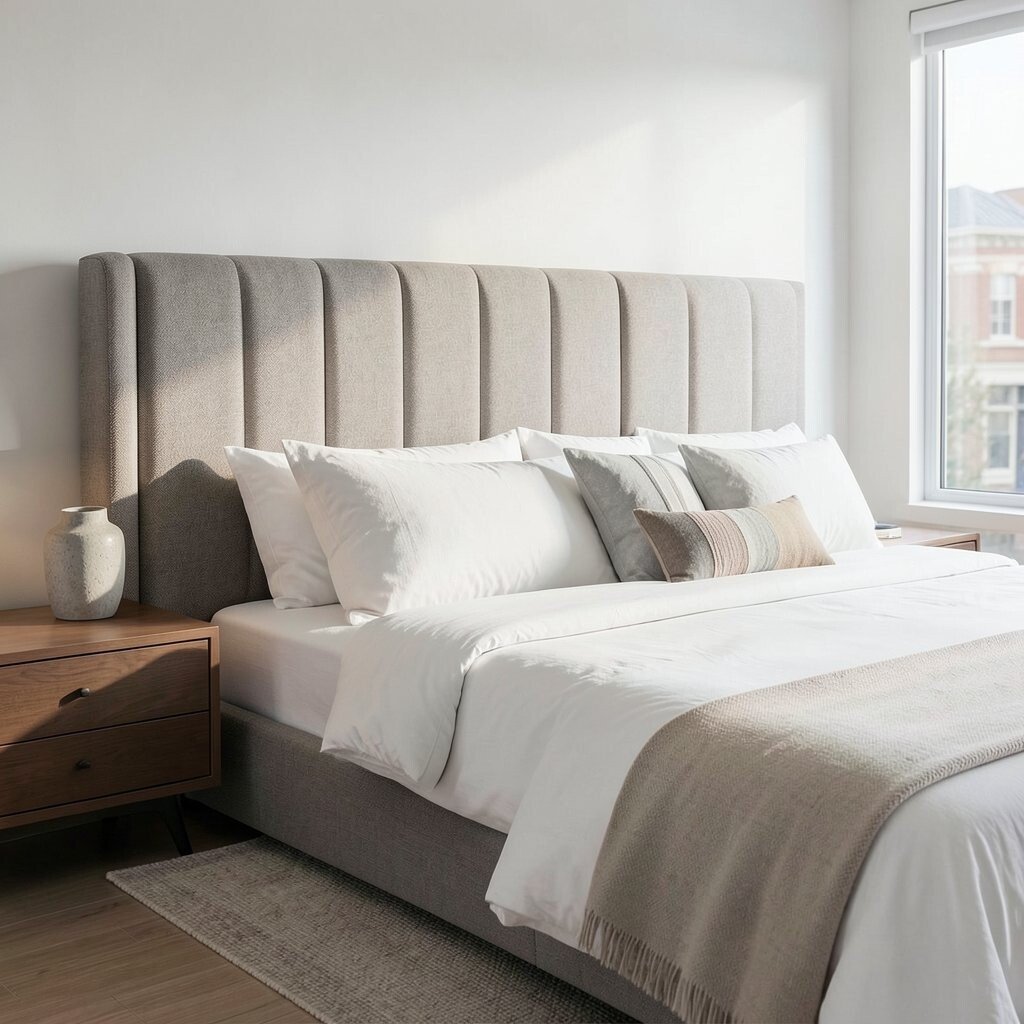 A bold headboard can make a bedroom feel special fast. Tall shapes, bright fabric, or interesting wood details can give the bed a strong presence.