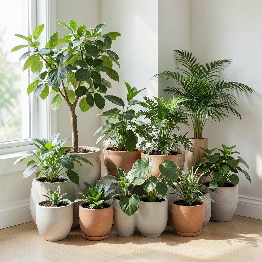 Green leaves look good with almost any style, from modern to cozy cottage. If you want less work, choose easy plants like pothos, snake plants, or ZZ plants.