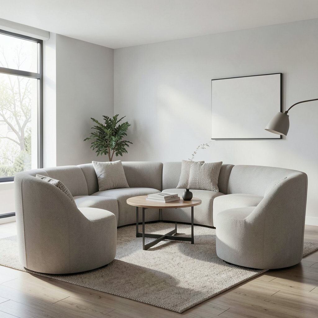 Curved furniture brings a gentle, smooth look to a room. Rounded chairs, oval tables, and soft-edged sofas can make the space feel easy on the eyes.