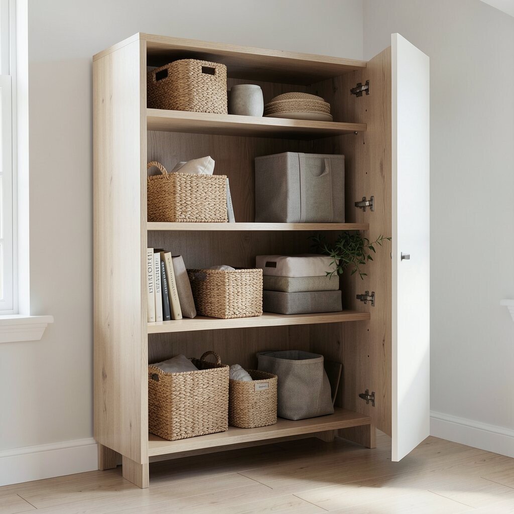 Choose items that fit your daily habits so the space works well, not just looks good. Baskets and bins are great for hiding shoes, bags, and mail without much cost.