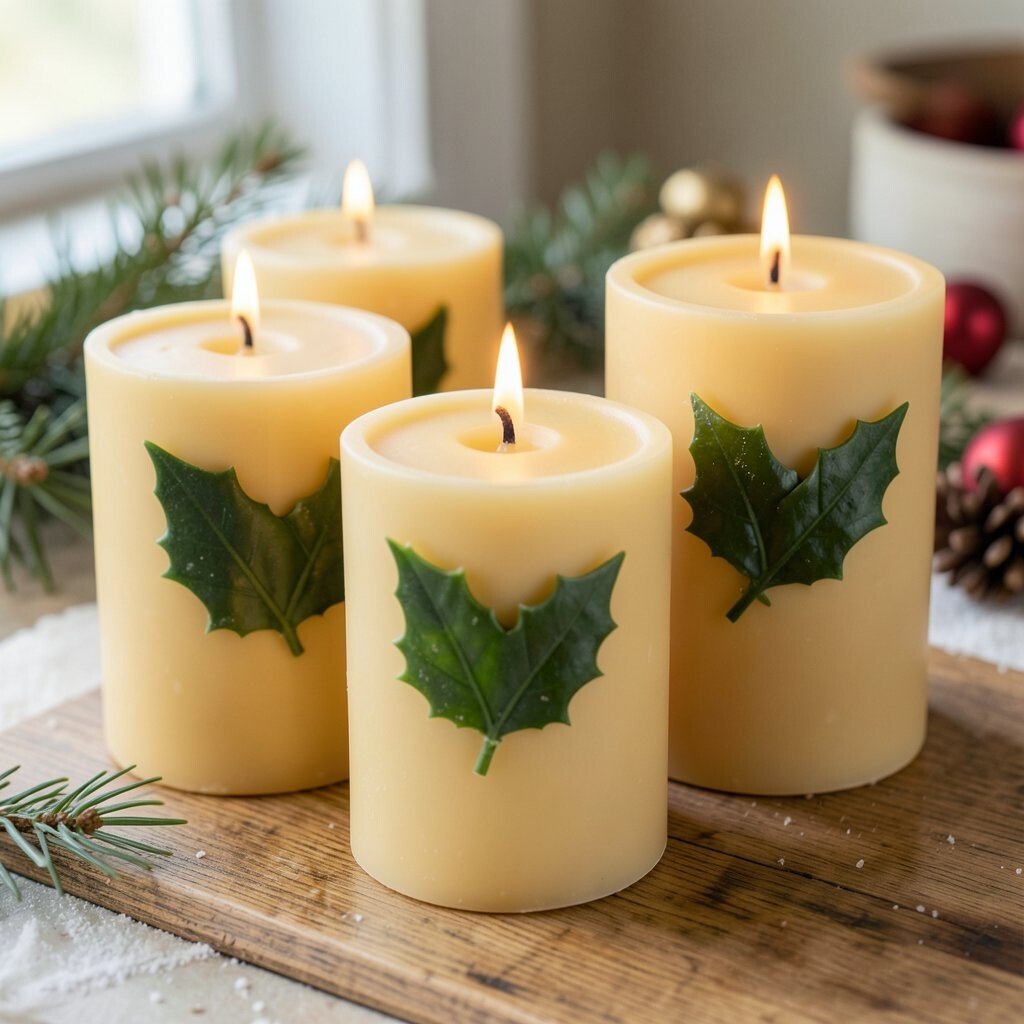 22. Beeswax Candles with Holly Leaf Details
