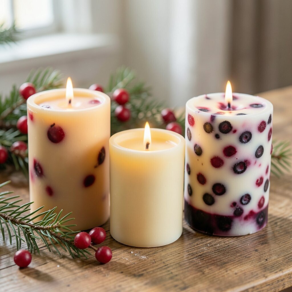 Try mixing berries with greenery for a classic Christmas combo. If you want a softer mood, use just a few berries so the candle still looks calm and clean.