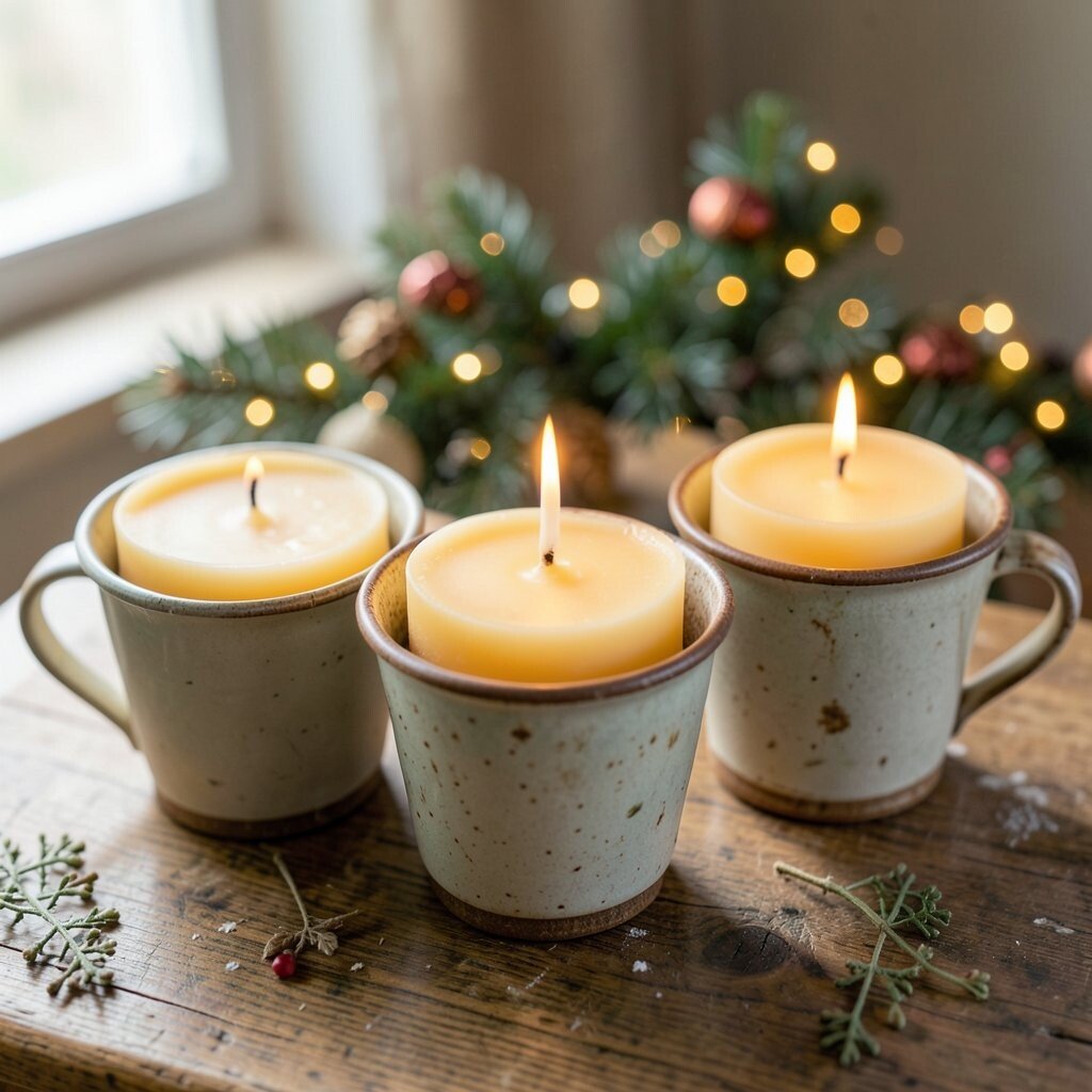 Choose cups with gold edges, floral prints, or holiday colors for extra charm. You can even match the candle scent to the cup style, like vanilla for a dainty floral cup or pine for a green one.
