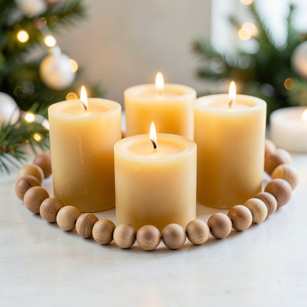 24. Beeswax Candles with Wooden Bead Garlands