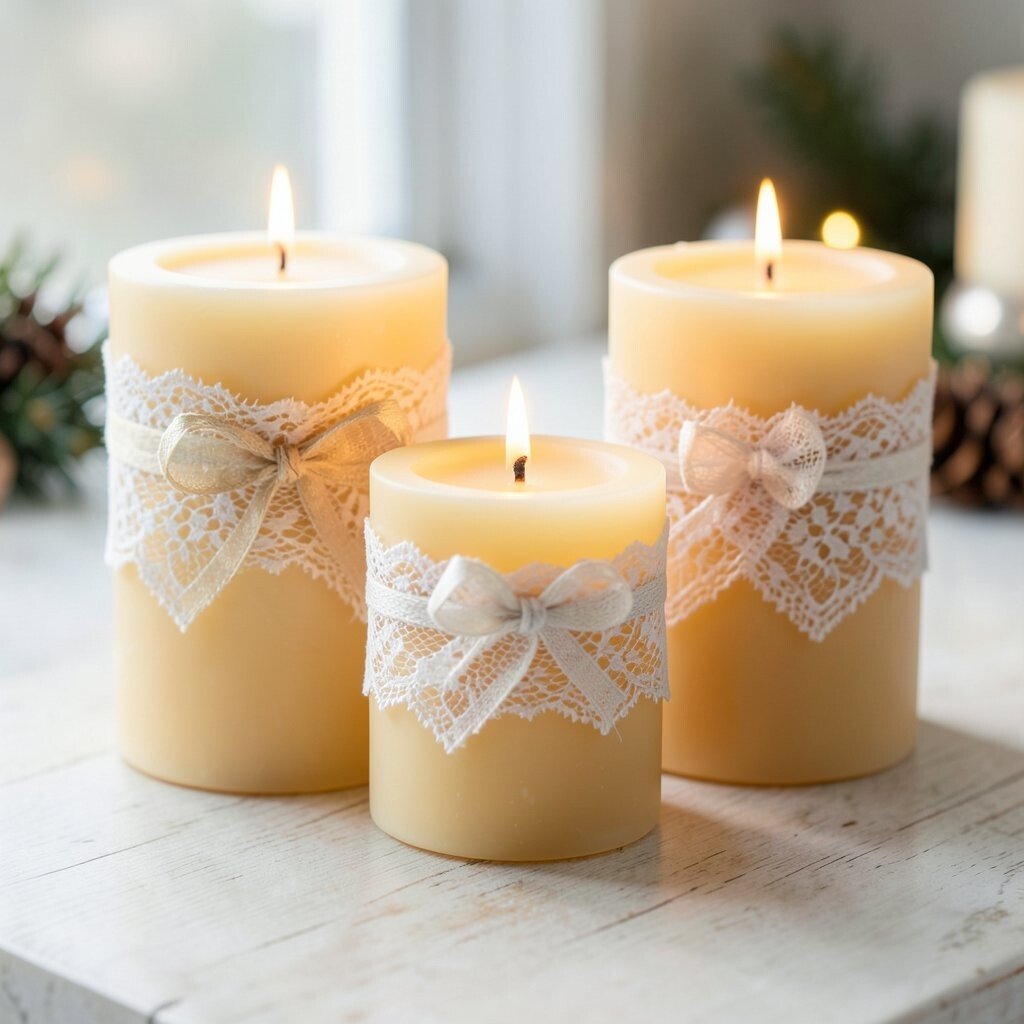 20. Beeswax Candles with Lace Wraps