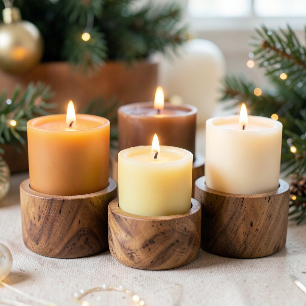 Wooden holders give beeswax candles a warm, cabin-like feel. The mix of wood and wax creates a natural look that feels calm and sturdy.