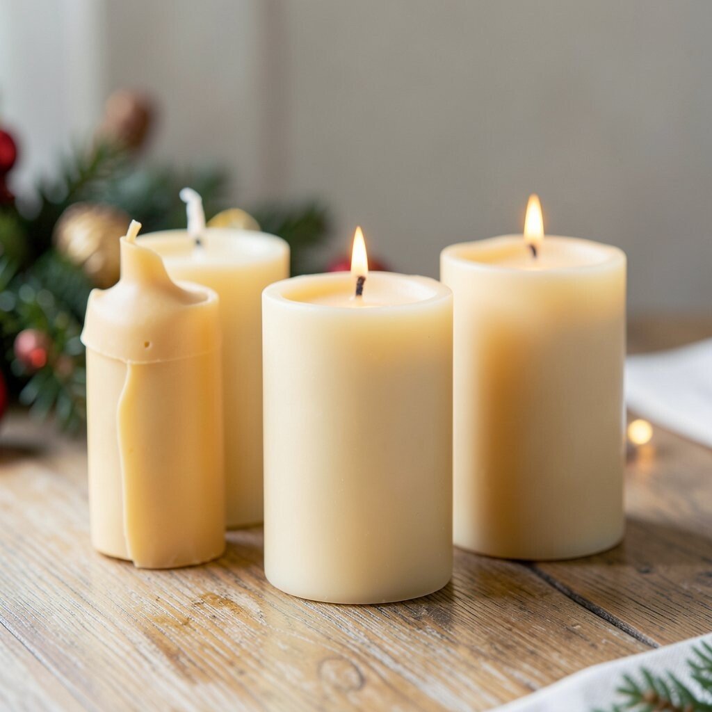 Honeycomb pillar candles look rich and elegant with their textured pattern. They bring a natural style that fits both rustic and modern Christmas decor.