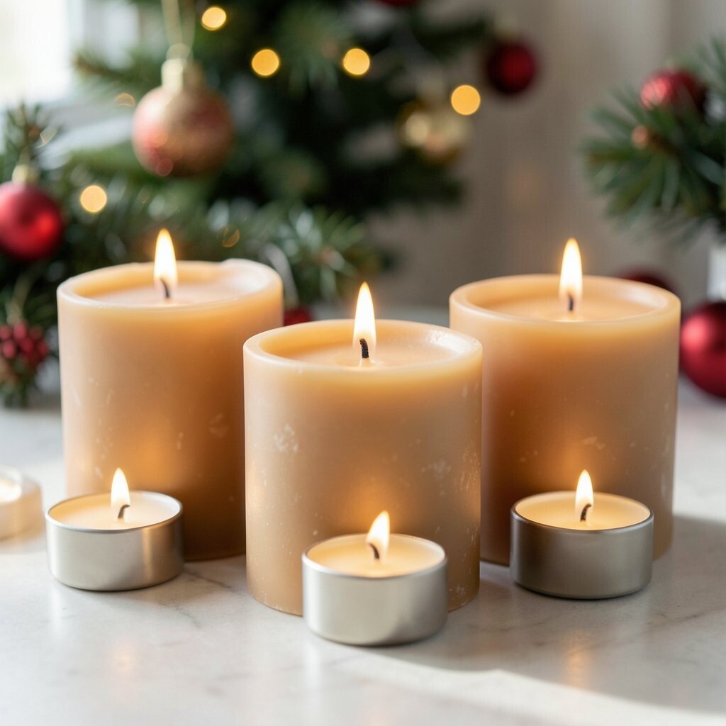 The look fits current cozy-home trends very well. Set these candles beside wood slices, evergreen clippings, or woven baskets for a relaxed Christmas style.