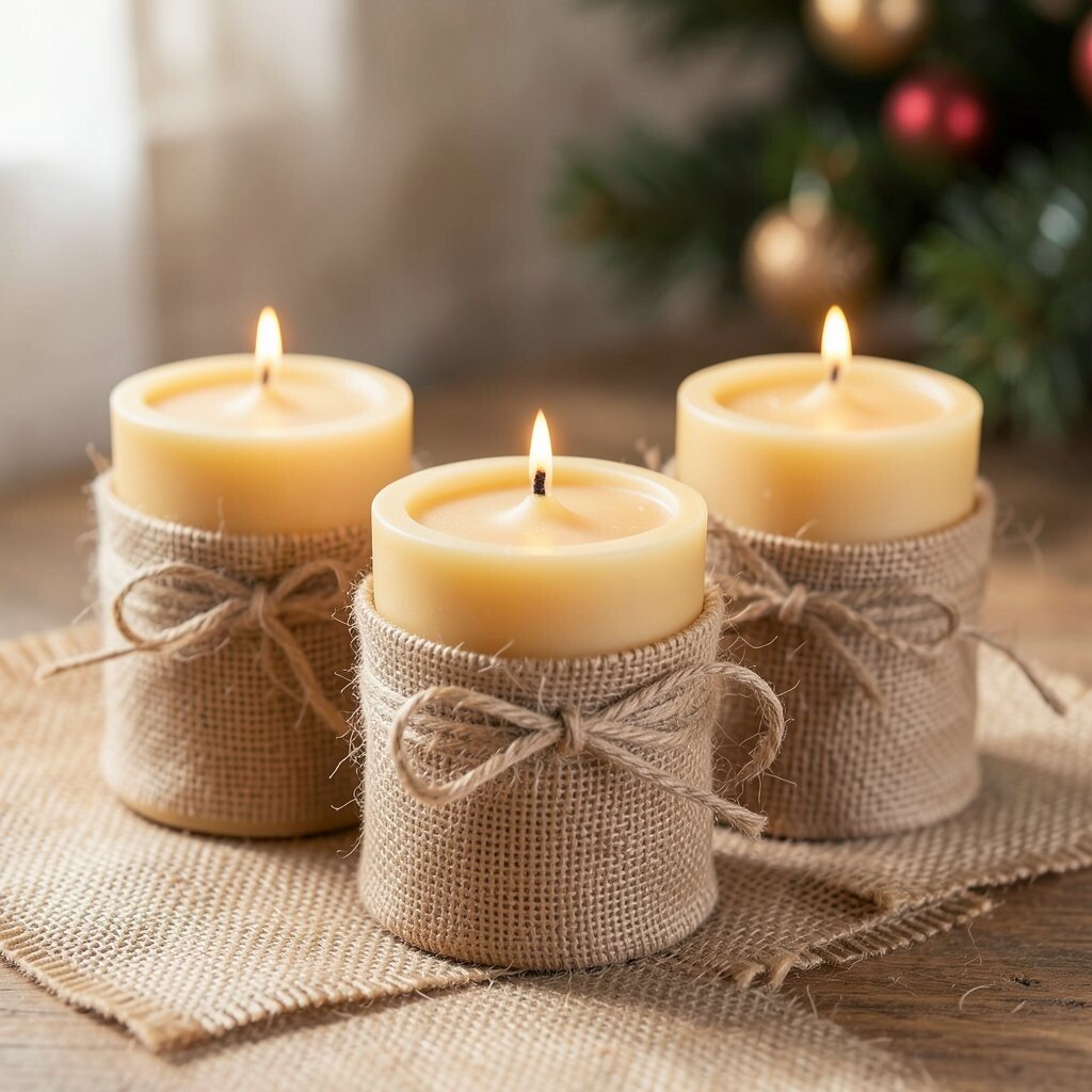 7. Beeswax Candles Wrapped in Burlap