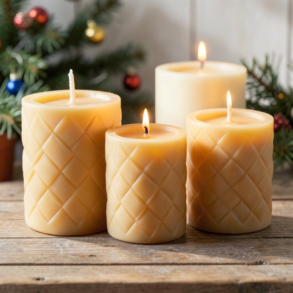 Quilted texture gives beeswax candles a cozy, handmade look that feels perfect for winter. The pattern brings softness and detail, almost like a warm blanket for the eye.