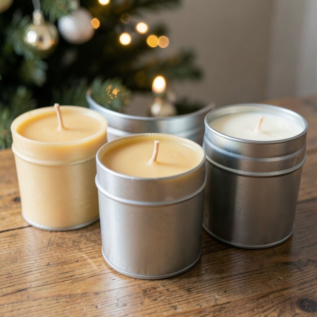 Metal tins give beeswax candles a neat, practical look. They are easy to carry, easy to store, and great for small spaces or travel gifts.