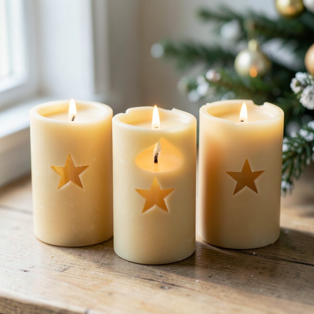 These candles fit well with current handmade decor trends because they feel simple and thoughtful. Place them on shelves, tables, or windows to add a gentle holiday color.